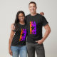 I give wanted to give this a 4 instead of a 5 because these Basic DARK T0shirts run unexpectedly SLIM or Narrow. Which is great if you do not have a potbelly, but I have a paunch. It isn't the shirt's fault that I've got a beer belly. The design and shirt itself is a quality cotton shirt. The color is more of a deep purple, but still a very pretty color. The Basic DARK T-shirts run a bit SLIMMER than the Basic Ts. The neck is a fraction narrower (or seems to be narrower) also. I'm a paunchy middle-aged woman and my neck is 12 inches (31cm) thick and the neckline fell about the same as in the photo of the man, and I had the desire to tug it a bit. So if you're a thick necked man or like loose shirts, be aware these are slimmer shirts. Once I get rid of my lockdown paunch it'll look great. The shirt washed well in cold water with no apparent bleeding. We don't have a dryer, so it hung dry. Did not shrink. Love the colors and the design. The design looks smaller on my shirt than it does on the model on-line. But still, it looks good on the shirt. The printing looks as it does on the model, just the size seems fractionally smaller. Washed garment in cold water, hung dry and design appeared unaffected.
