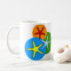 I like to buy and review my own work to ensure you get an outstanding product and I’m happy to give the Primary Colours Beach Football Mug 5 stars because it meets my expectations completely. Pleased with it I am. Zazzle mugs are well fabricated, microwave and dishwasher safe. And this yellow red and blue panoramic wraparound motif is sealed with a durable and sparkling Orca polished gloss glaze finish. It’ll never rub off! The size and energy of two jostling figures and a burly goal keeper fit the mug's circular shape well. There's momentum in the carousel effect as the two jostling figures repeat and move right around the mug and meet a burly goal keeper. Big sharp original images precisely drawn and delicately captured in blue and red with plenty of bright yellow! An ideal gift for anyone who plays ball! A fun gift for all beachball and football fans. A pair with the Retro Grey-Grain Beachball Player Mug. Available in two sizes and several styles including Black Ringer, Travelling, and Stern. Go have a peek!