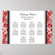 Elegant and contemporary customisable ten table seating chart for wedding in modern red, black and white classic floral damask vintage pattern. Customise with your guests name to make a unique seating chart for your wedding.