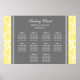 Elegant and contemporary customisable ten table seating chart for wedding in modern bright lemon yellow, grey and white classic floral damask vintage pattern. Customise with your guests name to make a unique seating chart for your wedding.