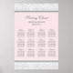 Elegant and contemporary customizable twelve table seating chart for wedding in modern light blush pink, grey and white classic floral damask vintage pattern. Customize with your guests name to make a unique seating chart for your wedding. Contact us for a custom chart for a different number of guests.