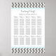 Chic and contemporary customisable fifteen table 150 guest seating seating chart for wedding in modern light aqua sky blue, charcoal dark grey and white retro chevron zigzags stripes pattern. Customise with your guests name to make a unique seating chart for your wedding. Contact us for a custom chart for a different number of guests.