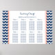 Elegant and contemporary customizable eight table seating chart for wedding in modern dark navy blue, peach orange pink and white retro chevron zigzags stripes pattern. Customize with your guests name to make a unique seating chart for your wedding. Contact us for a custom chart for a different number of guests.