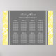 Elegant and contemporary customisable eight table seating chart for wedding in modern bright lemon yellow, grey and white classic floral damask vintage pattern. Customise with your guests name to make a unique seating chart for your wedding. Contact us for a custom chart for a different number of guests.