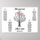 Elegant Tree and red hearts theme seating chart poster, template text for four tables with guest names.