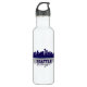 This stainless-steel water bottle is shown in a Seattle skyline print.