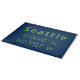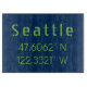 Seattle longitude and latitude coordinates in distressed fonts with sports teams colour combo