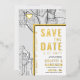 A unique save-the-date invitation card featuring a map of the city of Seattle, Washington. It features several unique features that make an impression on your future guest, including the names of the bride and groom, the city name, and the words "Save the Date" in gold foil. A gold foil heart symbol pinpoints your location of love in the city. The city map is on the front and reverse sides and can be scaled and moved around. All elements of this invite are unlocked, so have fun being creative and making it fit your style.