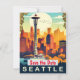 Transport your guests to the Pacific Northwest with this high-quality classic tourism art featuring the iconic observation tower. Its mid-century charm is perfect for your Seattle wedding invitation or save the date.