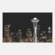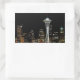 Seattle skyline at night, with Space Needle. Rectangular Sticker