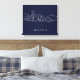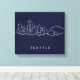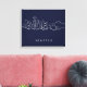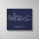 This design features a hand drawn sketch of the Seattle skyline on a dark blue background.