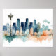 Seattle Skyline in Watercolor hues, Wall Poster, Handmade Painting