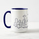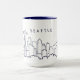 This design features a hand drawn sketch of the Seattle skyline on a dark blue background.