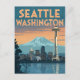 Seattle Washington Retro Skyline Postcard