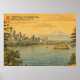 Seattle Washington Skyline in Japanese Ukiyo-e Poster