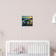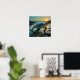 This horizontal poster features a beautiful sunset on the beach with a friendly sea turtle. Finished in an oil paint print.