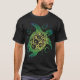 I give wanted to give this a 4 instead of a 5 because these Basic DARK T0shirts run unexpectedly SLIM or Narrow. Which is great if you do not have a potbelly, but I have a paunch. It isn't the shirt's fault that I've got a beer belly. The design and shirt itself is a quality cotton shirt. The color is more of a deep purple, but still a very pretty color. The Basic DARK T-shirts run a bit SLIMMER than the Basic Ts. The neck is a fraction narrower (or seems to be narrower) also. I'm a paunchy middle-aged woman and my neck is 12 inches (31cm) thick and the neckline fell about the same as in the photo of the man, and I had the desire to tug it a bit. So if you're a thick necked man or like loose shirts, be aware these are slimmer shirts. Once I get rid of my lockdown paunch it'll look great. The shirt washed well in cold water with no apparent bleeding. We don't have a dryer, so it hung dry. Did not shrink. Love the colors and the design. The design looks smaller on my shirt than it does on the model on-line. But still, it looks good on the shirt. The printing looks as it does on the model, just the size seems fractionally smaller. Washed garment in cold water, hung dry and design appeared unaffected.