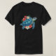 I give wanted to give this a 4 instead of a 5 because these Basic DARK T0shirts run unexpectedly SLIM or Narrow. Which is great if you do not have a potbelly, but I have a paunch. It isn't the shirt's fault that I've got a beer belly. The design and shirt itself is a quality cotton shirt. The color is more of a deep purple, but still a very pretty color. The Basic DARK T-shirts run a bit SLIMMER than the Basic Ts. The neck is a fraction narrower (or seems to be narrower) also. I'm a paunchy middle-aged woman and my neck is 12 inches (31cm) thick and the neckline fell about the same as in the photo of the man, and I had the desire to tug it a bit. So if you're a thick necked man or like loose shirts, be aware these are slimmer shirts. Once I get rid of my lockdown paunch it'll look great. The shirt washed well in cold water with no apparent bleeding. We don't have a dryer, so it hung dry. Did not shrink. Love the colors and the design. The design looks smaller on my shirt than it does on the model on-line. But still, it looks good on the shirt. The printing looks as it does on the model, just the size seems fractionally smaller. Washed garment in cold water, hung dry and design appeared unaffected.