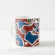 White mug decorated with a screenprinted pattern of seaweed.
