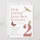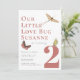 Customise this cute elegant baby girl 2nd birthday invitation featuring vintage butterflies and a delicate flying bug. "Our little love bug is turning two!" The reverse side features a sweet pink polka dot pattern. Personalise pink script for your needs. Check out the collection for coordinating products.