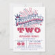 Get ready to light up your little one's second birthday with this fun and unique "Little Firecracker" themed invitation! It's the ultimate way to celebrate during the most patriotic and festive times of the year! The design blends red, white, and blue with a sparkler pattern that screams excitement. The title "Our little firecracker is turning Two!" says it all – this birthday party is going to be explosive!