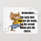 Cute mouse, cheese and humour about the Early Bird. Text says ... The early bird may get the worm, but the second mouse gets the cheese.