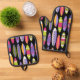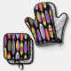 Secret Beach Hawaiian Surfboards Multi Black Oven Mitt & Pot Holder Set