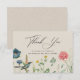 Secred garden wildflowers with a cute bird, elegant, whimsical frame with an ivory-white paper texture background, Customisable text message with an elegant-Thank you script typography.