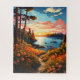 This puzzle features a vibrant illustration of a sandy path leading down to the secluded shoreline of a lake. Orange wildflowers overgrow on the path and light ripples roll across the blue water. The clouds in the sky glow with sherbert colours as the sun sets.