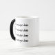 The cup arrived on time and was awesome when morphed, but before there was even anything hot in the mug, you could see through to the writing. Make sure you use a really light color font...I don't know how it will look but dark colors will show through the blackness of the mug. Other than being see through, the print of my text looked awesome!