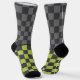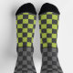 This first design keeps it cool — at least on the surface. Up on the calf: subtle checks in grey on dark grey. But down below, on the foot? The same pattern comes to life in bold lime green. A quiet top, a wild sole. It’s a perfect symbol of duality: what the world sees, and who you really are.