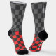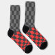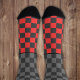 This first design keeps it cool — at least on the surface. Up on the calf: subtle checks in grey on dark grey. But down below, on the foot? The same pattern comes to life in bold red. A quiet top, a wild sole. It’s a perfect symbol of duality: what the world sees, and who you really are.