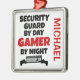This custom ornament featuring the quote "Security Guard by Day Gamer by Night" is perfect for any security guard that loves playing video games.