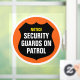 Security guard window cling with fully customisable text. This eye-catching design features a security shield with the warning "Notice: Security Guards on Patrol". Ideal for homes and businesses to alert visitors of guarded areas. Printed colours: orange, yellow, black and white. Additionally, you can customise the orange 'oval' colour by using the design editor tool. Shop the collection for more popular security product ideas and supplies for sale online.