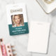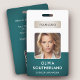 A modern and elegant corporate ID badge designed in a deep green colour palette. Easily customisable with an employee photo, name, job title, company logo, and other business details. The layout features clean typography for a professional and clear appearance, ensuring easy identification. This ID badge is available with options for a lanyard, metal clip, or retractable holder. No minimum order required.