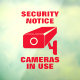 Security notice cameras in use general warning Window Cling for business. Custom warning sign for shop, office building and more. Static non adhesive Window Cling. Custom signs for home, shops, museums, business, office, workplace, school, store, company, hospital and other public places. Make your own signage with custom text. Non adhesive. Sticks to window. Caution sign for customers, clients, visitors, guests etc. Face outwards or inwards, printed on one side. Red or custom colour.