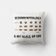 Geologists and earth scientists will enjoy wry sedimentary humour with this throw pillow featuring different types of sediment along with the following scientific truism saying for anyone who studies sedimentary rock: "Sedimentology Is My Slice Of Life". Make others do a double-take with a dose of tongue-in-cheek geek humour today! Memorable throw pillow for any sentimental rock hound.