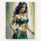 Una acuarela que captura la esencia de la danza del vientre, en un traje verde lujoso que refleja la majestuosidad y la gracia de la bailarina.