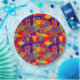 An original abstract pattern made up of triangles and rectangles decorated in various way which kind of look like buildings and houses.