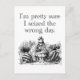 Carpe diem! Seize the day! But what if you seized the wrong day, and you're having a really bad day? Is it just bad luck or are you really a disaster magnet? Whatever it is, Alice in the illustration on this postcard is right there with you, so you aren't alone.