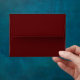 A self-addressed burgundy envelope with gold text featuring a burgundy and blue floral lining. The envelope is the appropriate size to fit 3.5 x 5" RSVP response cards.