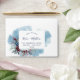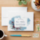 Elegant white RSVP self addressed envelope with gorgeous blue watercolor stain and floral details in both front and inside. Blue watercolor stains cascading behind watercolor floral with flowers and foliage in a blend of dusty blue, navy, burgundy, magenta and purple hues. Coordinating RSVPs available. Part of our "Celestial Blooms"" collection with variety of coordinating products available.