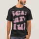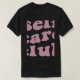 I give wanted to give this a 4 instead of a 5 because these Basic DARK T0shirts run unexpectedly SLIM or Narrow. Which is great if you do not have a potbelly, but I have a paunch. It isn't the shirt's fault that I've got a beer belly. The design and shirt itself is a quality cotton shirt. The color is more of a deep purple, but still a very pretty color. The Basic DARK T-shirts run a bit SLIMMER than the Basic Ts. The neck is a fraction narrower (or seems to be narrower) also. I'm a paunchy middle-aged woman and my neck is 12 inches (31cm) thick and the neckline fell about the same as in the photo of the man, and I had the desire to tug it a bit. So if you're a thick necked man or like loose shirts, be aware these are slimmer shirts. Once I get rid of my lockdown paunch it'll look great. The shirt washed well in cold water with no apparent bleeding. We don't have a dryer, so it hung dry. Did not shrink. Love the colors and the design. The design looks smaller on my shirt than it does on the model on-line. But still, it looks good on the shirt. The printing looks as it does on the model, just the size seems fractionally smaller. Washed garment in cold water, hung dry and design appeared unaffected.
