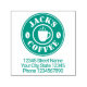 Self Inking Rubber Stamp for coffee shop business. Add your own address and company name. Great for shop, store, cafe, bar, bistro, roaster, barista, producer and more. Green or custom custom ink colour. Coffee beans and coffee cup silhouette logo.