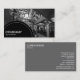 A business card template with a black semi-circular panel decorated with a white dotted line in the bottom left for your Company name and business type. The semi-circular panel is placed over a photo or artwork background (which can also be changed). Name and other contact details on the reverse.