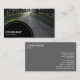 A business card template with a black semi-circular panel decorated with a white dotted line in the bottom left for your Company name and business type. The semi-circular panel is placed over a photo or artwork background (which can also be changed). Name and other contact details on the reverse.