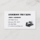 A dramatic close up photo of a macho semi truck . Great business card for your trucking , hauling, moving, freight, transport or delivery company.