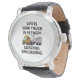 Semi Trucks Trucker Truck Driver Watch designed by Nisha Prabhu. Featuring semi truck illustration with playful typography ''Life Is Semi Truck In Between Loading Unloading''. Get ready to hit the open road in style with this unique and eye-catching semi trucks trucker watch. Perfect for the truck driver in your life, this watch features a bold and colourful design that will surely turn heads. Whether you're out on a long haul or just running errands around town, this watch is sure to keep you on time and on trend. So grab yours today and show off your love for big rigs and the open road!