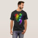 I give wanted to give this a 4 instead of a 5 because these Basic DARK T0shirts run unexpectedly SLIM or Narrow. Which is great if you do not have a potbelly, but I have a paunch. It isn't the shirt's fault that I've got a beer belly. The design and shirt itself is a quality cotton shirt. The color is more of a deep purple, but still a very pretty color. The Basic DARK T-shirts run a bit SLIMMER than the Basic Ts. The neck is a fraction narrower (or seems to be narrower) also. I'm a paunchy middle-aged woman and my neck is 12 inches (31cm) thick and the neckline fell about the same as in the photo of the man, and I had the desire to tug it a bit. So if you're a thick necked man or like loose shirts, be aware these are slimmer shirts. Once I get rid of my lockdown paunch it'll look great. The shirt washed well in cold water with no apparent bleeding. We don't have a dryer, so it hung dry. Did not shrink. Love the colors and the design. The design looks smaller on my shirt than it does on the model on-line. But still, it looks good on the shirt. The printing looks as it does on the model, just the size seems fractionally smaller. Washed garment in cold water, hung dry and design appeared unaffected.