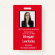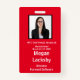 Seminar Attendee badge in Red and White. All elements can be changed, including: photo, seminar name, seminar location & date, attendee's name, attendee's title and the name of the company.Also available in horizontal orientation in this store. Slot at top for lanyard.